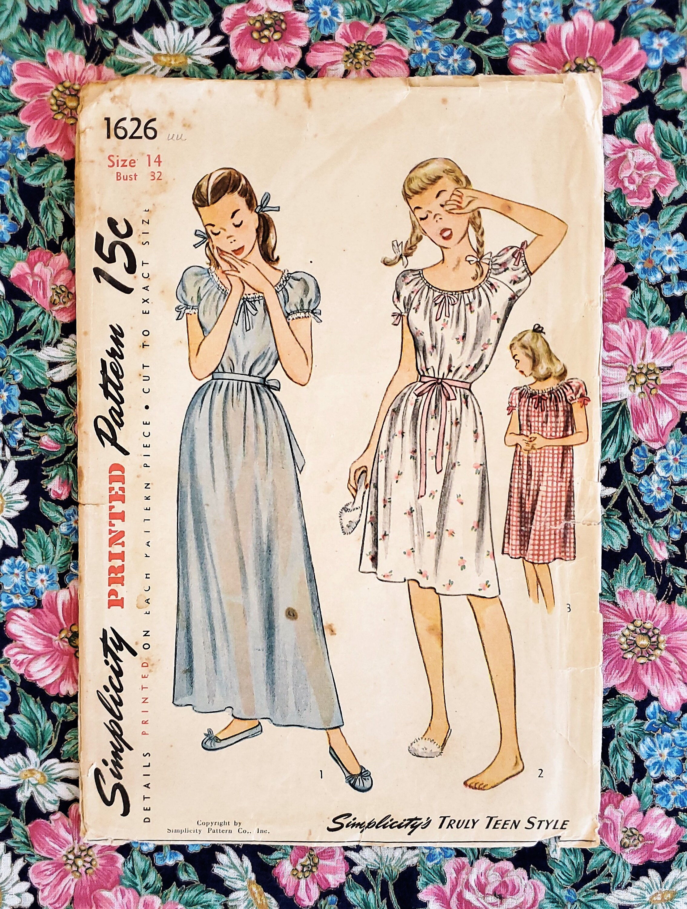 40 S Girl Nightgown Pattern Simplicity 1626 Size 14 Etsy