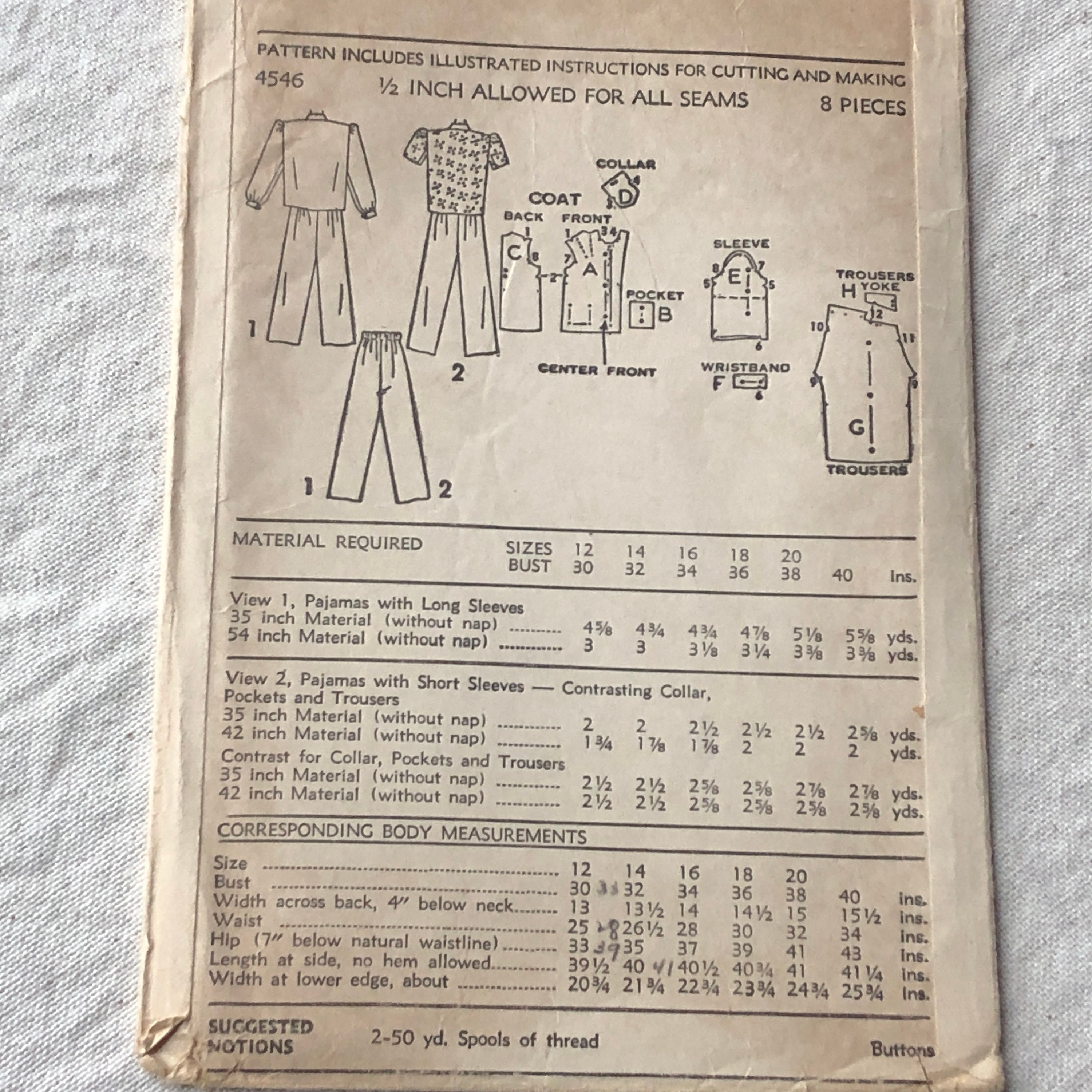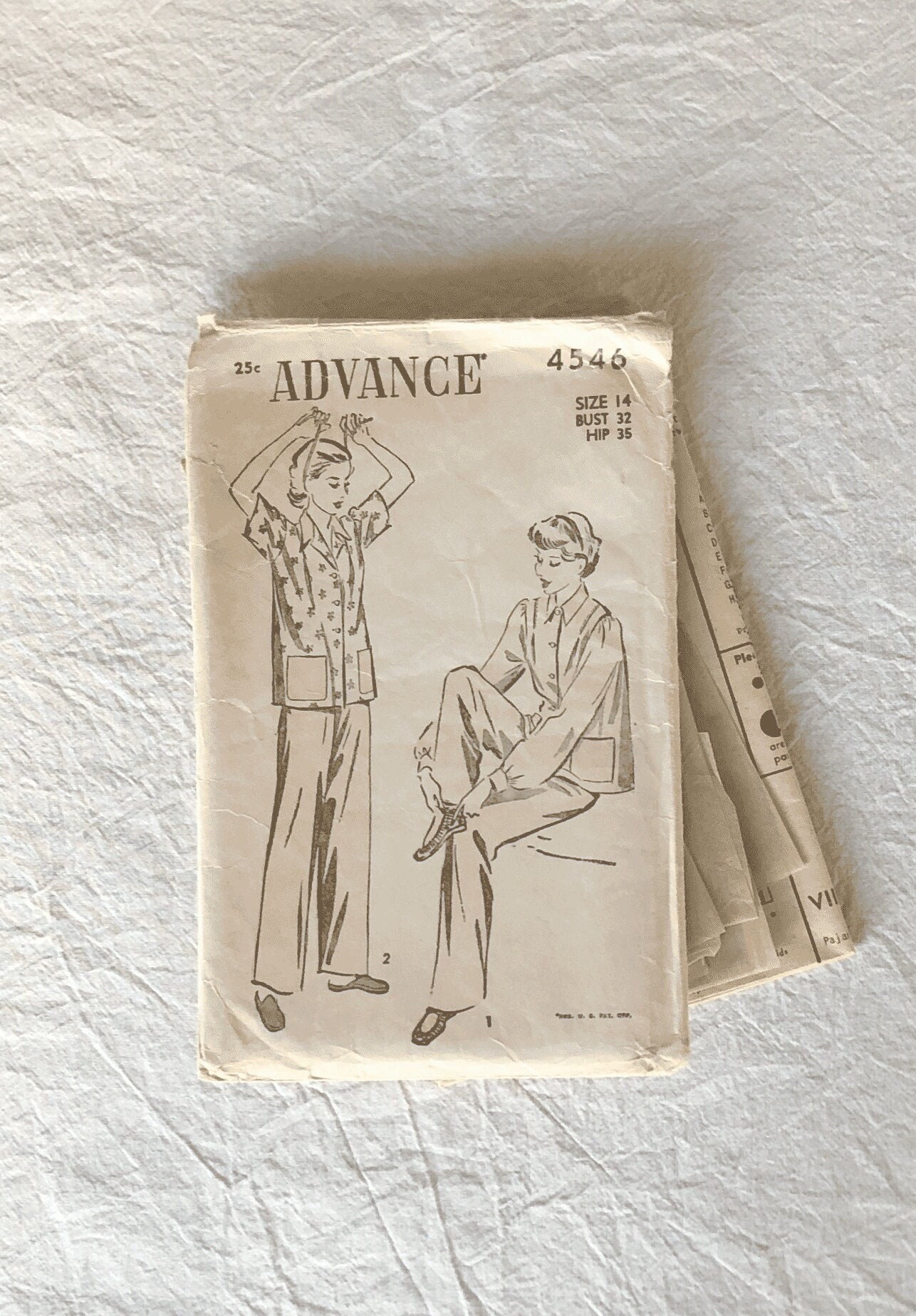1940s Vintage Sewing Pattern Pajamas Advance 4546 Etsy