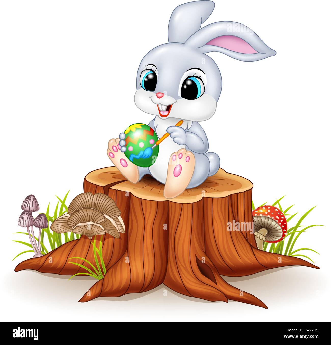 Peinture Dessin Anime Lapin De Paques Un Oeuf Sur Souche D Arbre Image Vectorielle Stock Alamy