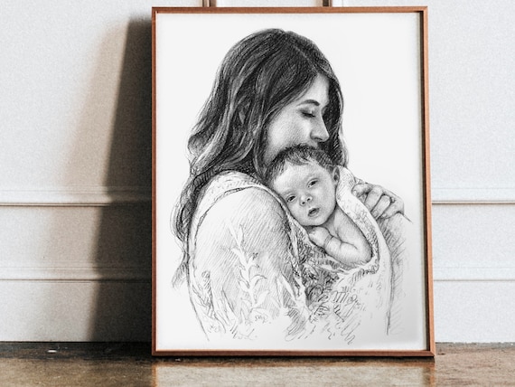 Mothers Day Gift For Mom From Daughter Gift For Mothers Day Christmas Gift For Mom Birthday Charcoal Drawing Mothers Day Personalized Art Etsy Uk